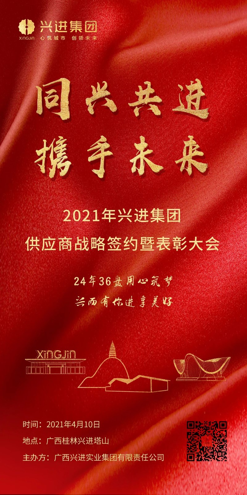 活動(dòng)當(dāng)天,將邀請(qǐng)桂林主流媒體到場(chǎng)記錄活動(dòng)全過(guò)程,并有同步線上直播,未能現(xiàn)場(chǎng)參會(huì)的供應(yīng)商伙伴可在線互動(dòng)觀看。 同興共進(jìn),攜手未來(lái),興進(jìn)集團(tuán)將以更加長(zhǎng)遠(yuǎn)的目光和思考,開(kāi)放更加廣闊的合作空間,與眾多合作伙伴篤定同行,開(kāi)啟2021年合作新篇章!
