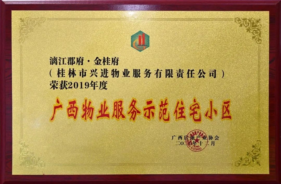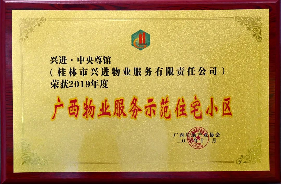 在此次物業(yè)管理行業(yè)大會上,興進(jìn)·漓江郡府金桂府、興進(jìn)·中央尊館喜獲2019年度"廣西物業(yè)服務(wù)示范住宅小區(qū)"榮譽(yù)稱號。