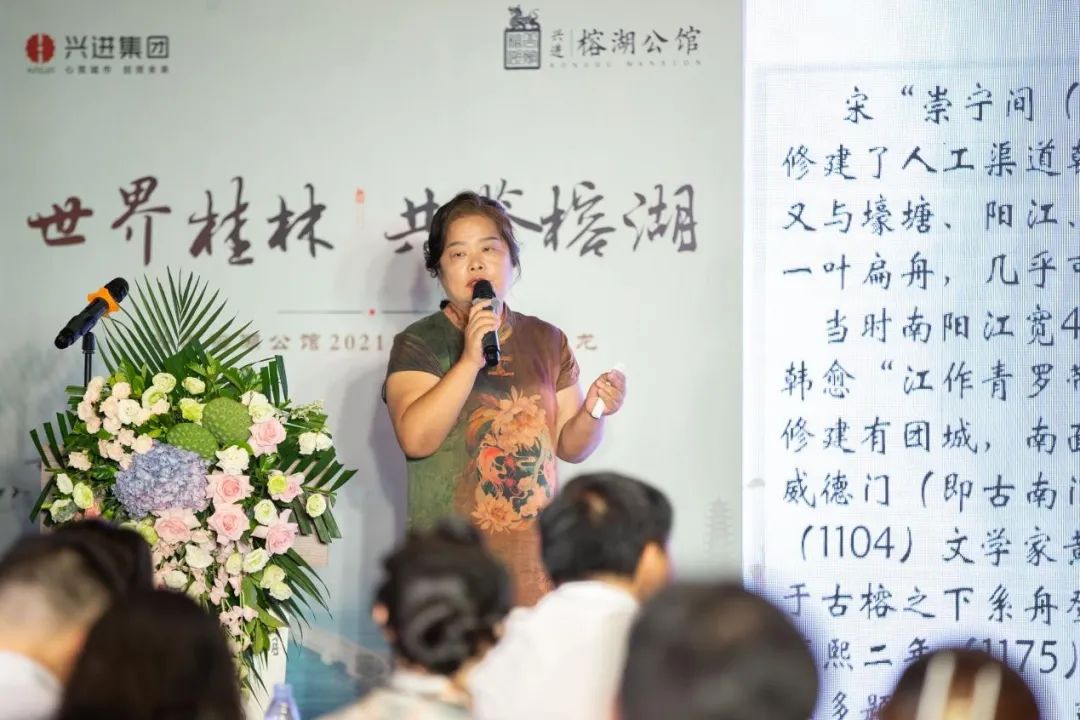 一首少兒吟誦的《詠桂林·頌榕湖》演繹了歷朝歷代桂林山水歌賦,將所有來賓帶入到桂林山水的畫卷中。興進(jìn)集團(tuán)董事長(zhǎng)羅欣先生出席并為活動(dòng)致詞發(fā)言,表示這是一場(chǎng)"穿越千年榕湖"的歷史文化交流會(huì),目的是為尋找、挖掘、保護(hù)和利用好榕湖的文化資源,傳播榕湖文化,讓市民更加深入地了解榕湖,也傳遞了興進(jìn)集團(tuán)作為桂林知名企業(yè)對(duì)桂林文化傳承和傳播的社會(huì)責(zé)任和歷史使命感。