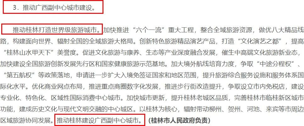 推動桂林世界級旅游城市的打造,加快推進"六個一流"工程,建設專業(yè)化、特色化的區(qū)域性國際消費中心城市,未來成為一個城區(qū)常住人口超150萬的大城市。