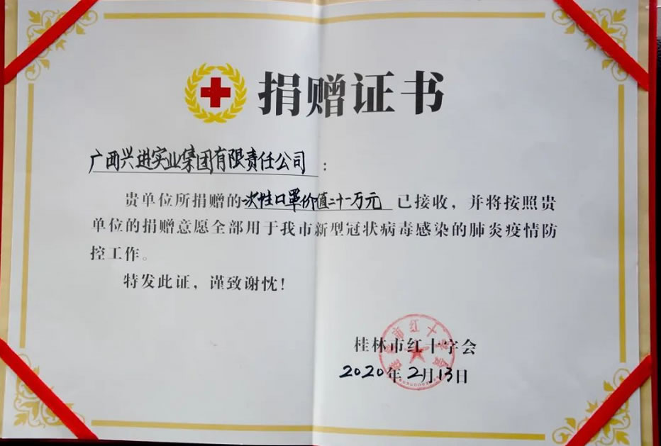 2020年,疫情肆虐的一年,興進集團第一時間啟動應(yīng)急捐贈,向武漢市江夏區(qū)紅十字會、桂林市第二人民醫(yī)院、自治區(qū)南溪山醫(yī)院、桂林市紅十字會等15家抗疫一線單位,捐助抗疫善款及醫(yī)療物資,總金額超168萬元,用鐵肩擔當、愛心善舉助力疫情防控。