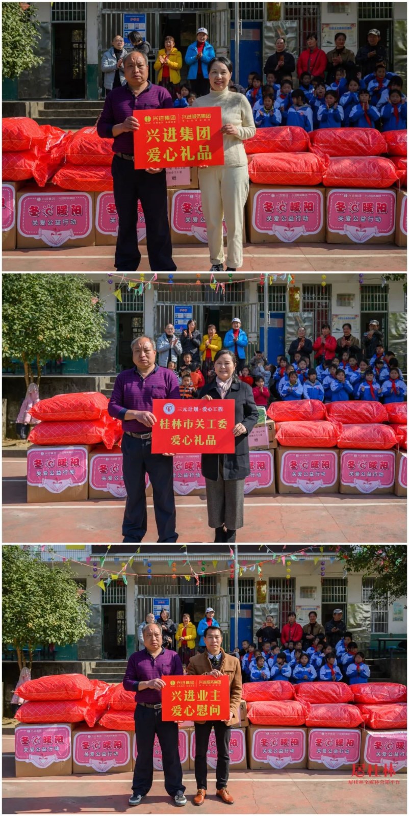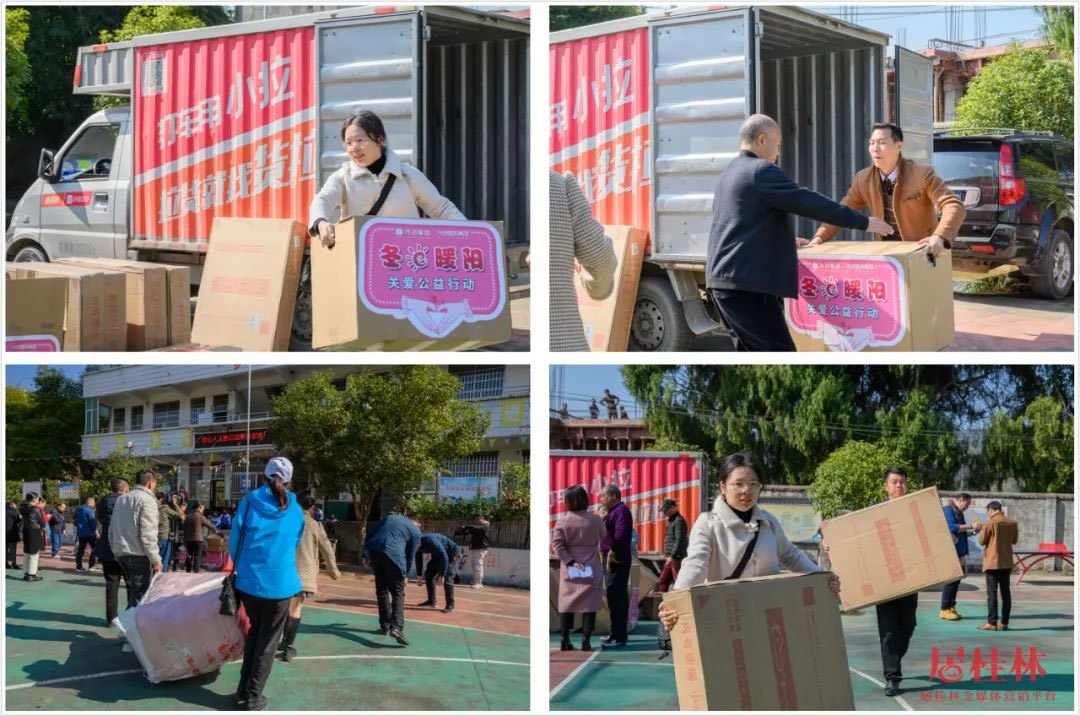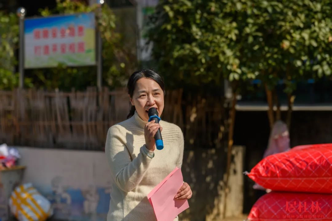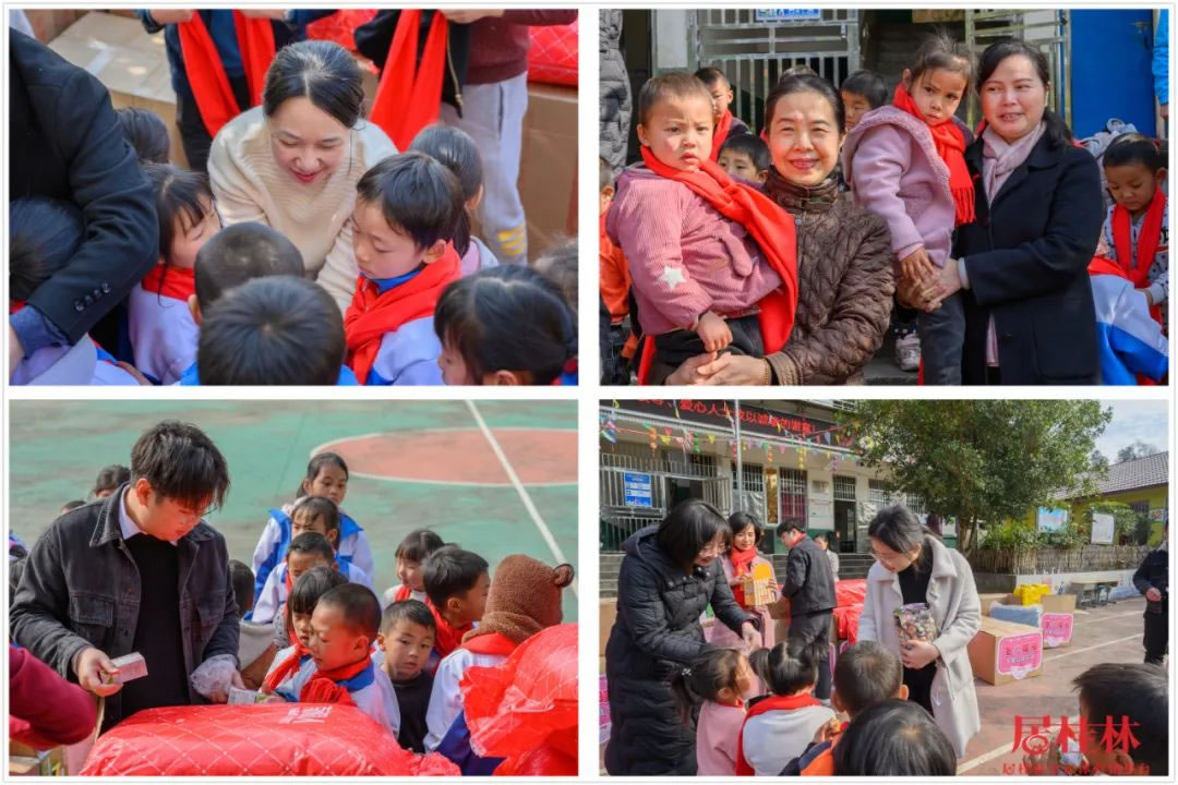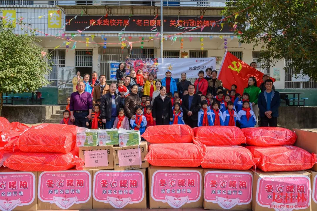 中午12點,愛心車隊抵達白嶺小學,這位"圣誕老人"終于揭開神秘面紗,他們就是由興進集團和眾多愛心人士組成的一行30多人愛心公益團隊,包括了桂林市市委組織部副部長、老干部局局長、市關工委副主任黃小桂,市關工委副主任王榕,市關工委辦公室主任宦福成,全州縣委組織部副部長、老干局部局長、縣關工委副主任韋同波,全州縣關工委辦公室主任劉鑫,五老成員愛心人士宋慧萍、周佳、唐軍紅、黃潔瓊等。