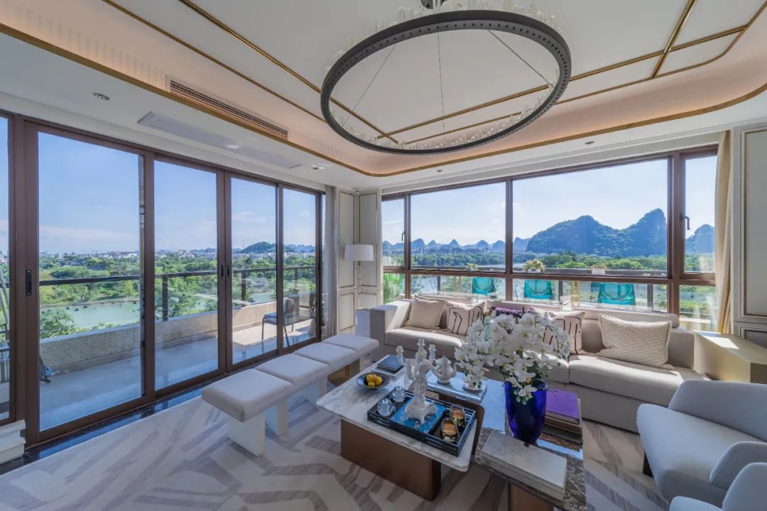 對資源的占有,在室內(nèi)同樣得到了延續(xù),興進·漓江壹號攬江平墅,向世界詮釋了什么是無界,以270°環(huán)幕視界,將漓江頭排風光盡藏,感悟“星垂平野闊,月涌大江流”的意境。
