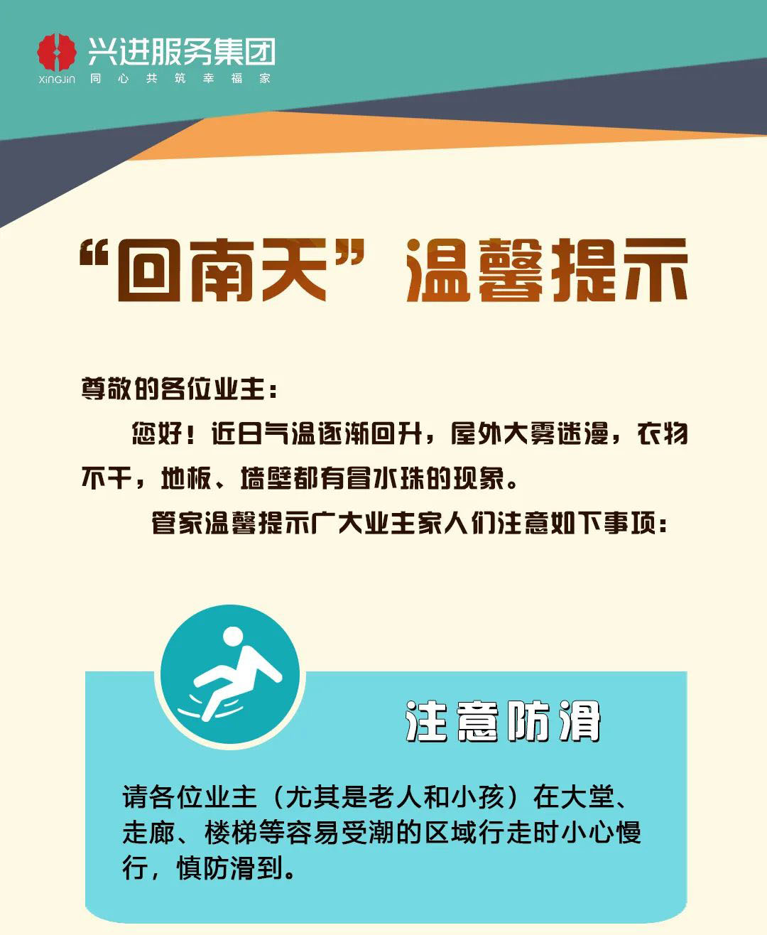 用行動(dòng)將愛(ài)心寫(xiě)實(shí),把文明變成舉手之勞。興進(jìn)服務(wù)集團(tuán)以高標(biāo)準(zhǔn)、人性化的服務(wù),為10萬(wàn)+業(yè)主們提供以人為本的居家環(huán)境,建立和睦友善的鄰里關(guān)系,營(yíng)造文明和諧的社區(qū)氛圍,打造滿意度高、生活幸福感強(qiáng)的美好家園。