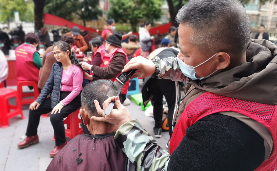 業(yè)主們?cè)缭绲木驮诶戆l(fā)服務(wù)的臺(tái)前排起了長(zhǎng)隊(duì),不少都是沖著興進(jìn)Tony的手藝來(lái)的。對(duì)于老人和小孩來(lái)說(shuō),這種便捷的理發(fā)方式,為他們省去很多麻煩。