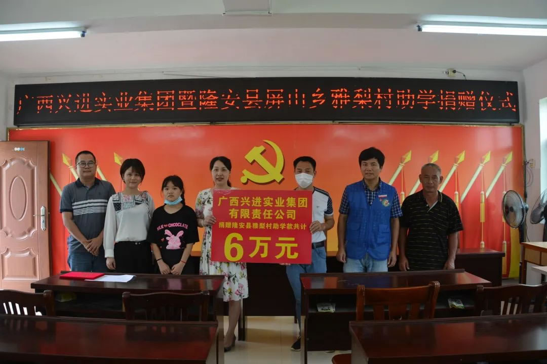 連續(xù)十年堅持資助"三元午餐·愛心工程"活動,為全州縣東山鄉(xiāng)白嶺小學(xué)捐款捐物;2019年,向桂林市教育發(fā)展基金會捐贈100萬元,用于支持桂林教育事業(yè)發(fā)展;2020年、2021年,向桂林中學(xué)捐贈"興進·桂林中學(xué)優(yōu)秀獎學(xué)金",為學(xué)子的求學(xué)之路提供幫助。