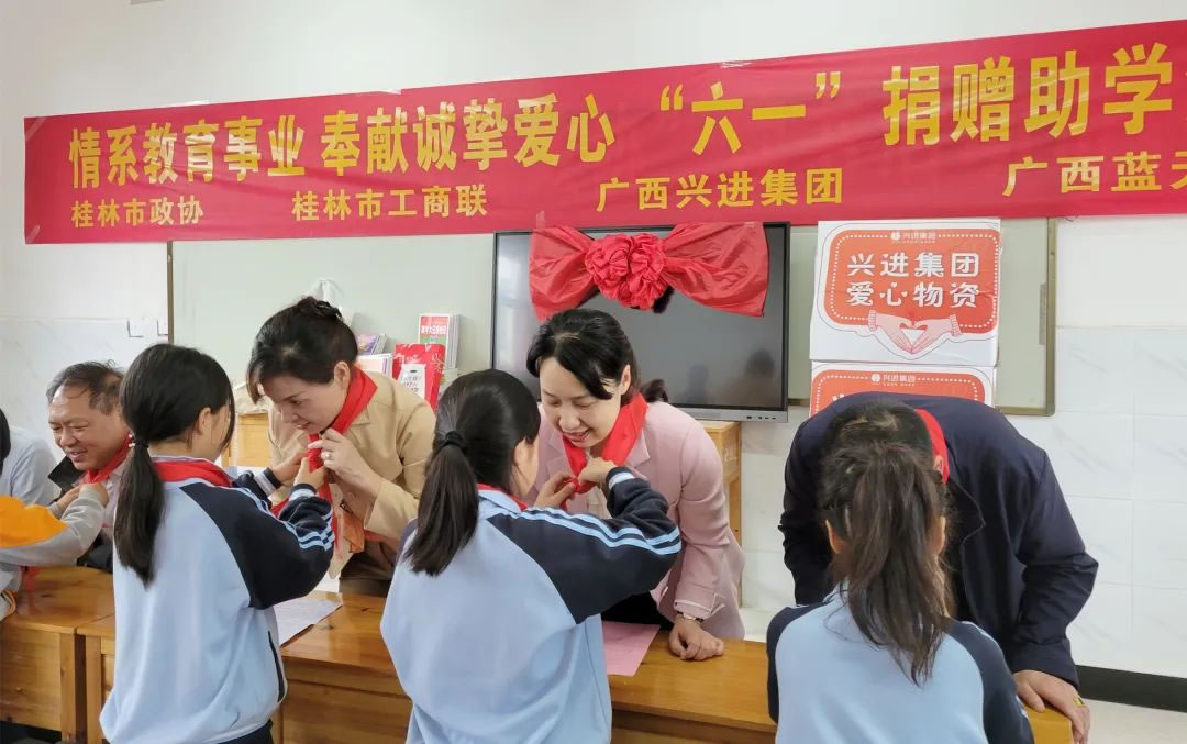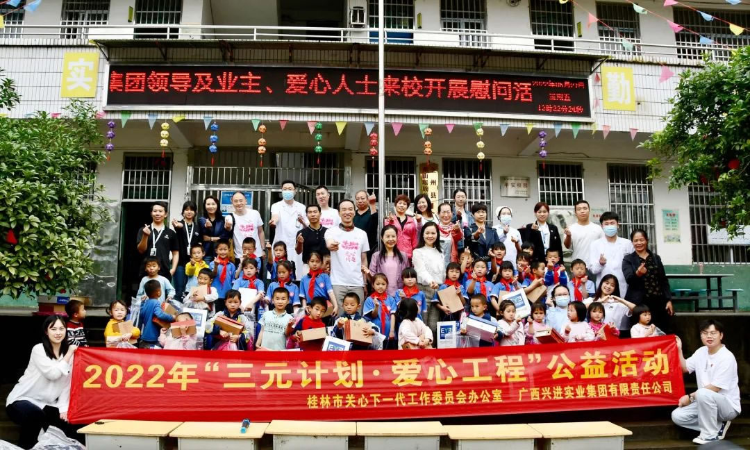 連續(xù)十一年開展"三元午餐"愛(ài)心活動(dòng),為白嶺小學(xué)捐資捐物,改善山區(qū)孩子學(xué)習(xí)環(huán)境;2019、2020年,先后向桂林市教育發(fā)展基金會(huì)捐款150萬(wàn),用于支持桂林教育事業(yè)發(fā)展;多年來(lái),先后在桂林中學(xué)設(shè)立"興進(jìn)獎(jiǎng)""國(guó)強(qiáng)獎(jiǎng)"等獎(jiǎng)學(xué)金,獎(jiǎng)勵(lì)優(yōu)秀學(xué)子,助力圓夢(mèng)大學(xué)……