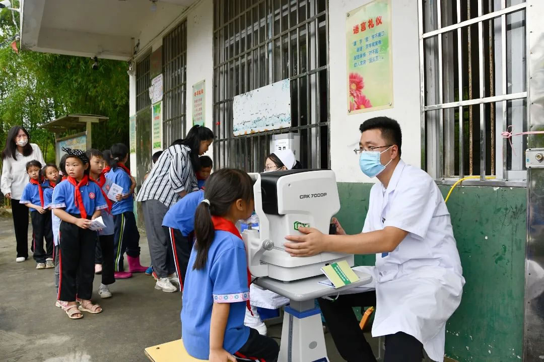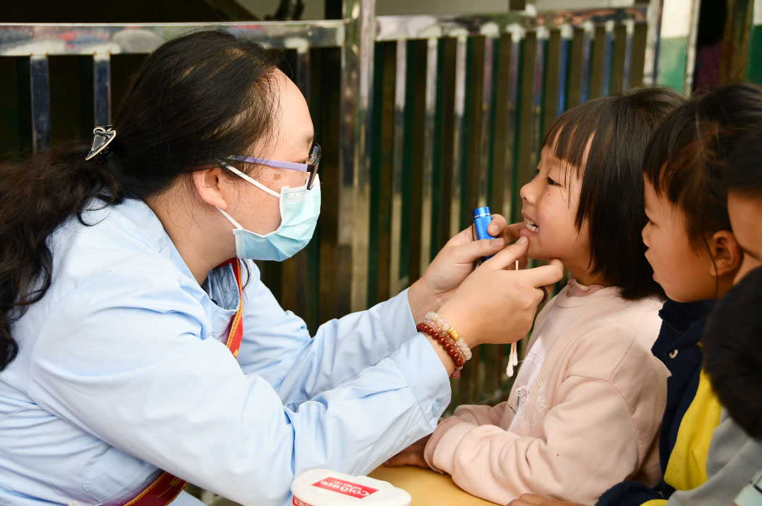 愛(ài)心公益團(tuán)隊(duì)為孩子們檢查口腔、視力