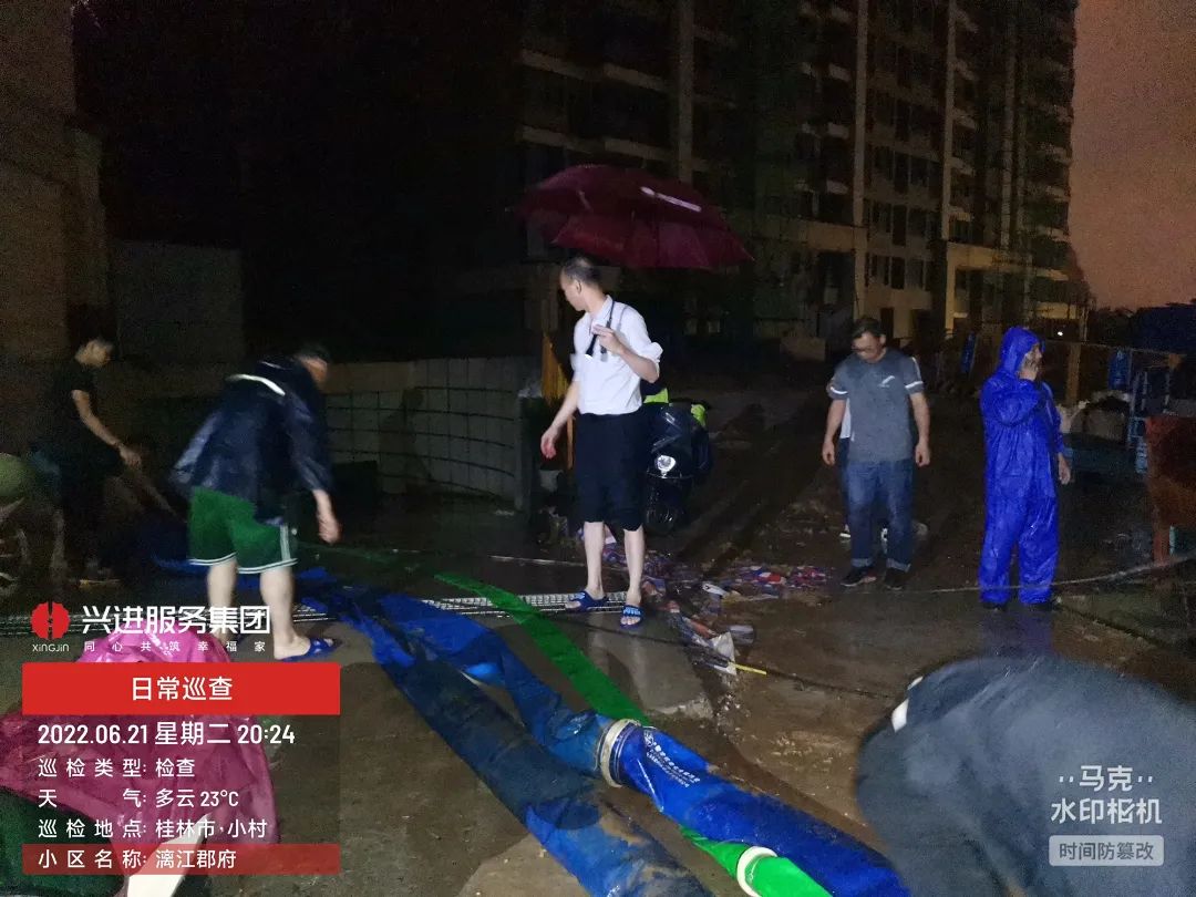 6月22日,漓江桂林城區(qū)河段出現(xiàn)超警2米左右洪水,超2019年最高水位。面對此次特大汛情,集團領導班子高度重視,親臨現(xiàn)場指導,工程部、物業(yè)及商業(yè)積極聯(lián)動互通,各項目負責人冒著雷暴天氣緊急趕往現(xiàn)場指揮。