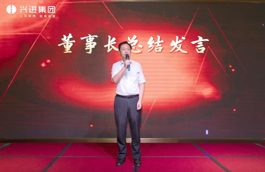 會議最后,興進集團董事長兼總裁羅欣先生為此次大會做總結致辭。他表示,在房地產(chǎn)市場的嚴峻時期,興進全體同仁團結一致,履行自身職責,迎難而上,不論是崗位先鋒模范事跡,還是抗洪搶險中的精神斗志,都是值得學習與表彰的。