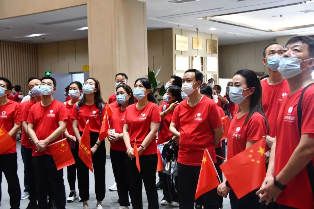興進(jìn)集團(tuán)黨支部書記羅捷、董事長羅欣緩步向前整理花籃緞帶,全體成員向革命先烈行三鞠躬禮,深切緬懷革命先烈,表達(dá)內(nèi)心的崇高敬意。在黨支部書記羅捷的帶領(lǐng)下,全體黨員在"紅軍魂"雕塑前,面對鮮紅的黨旗重溫了入黨誓詞。