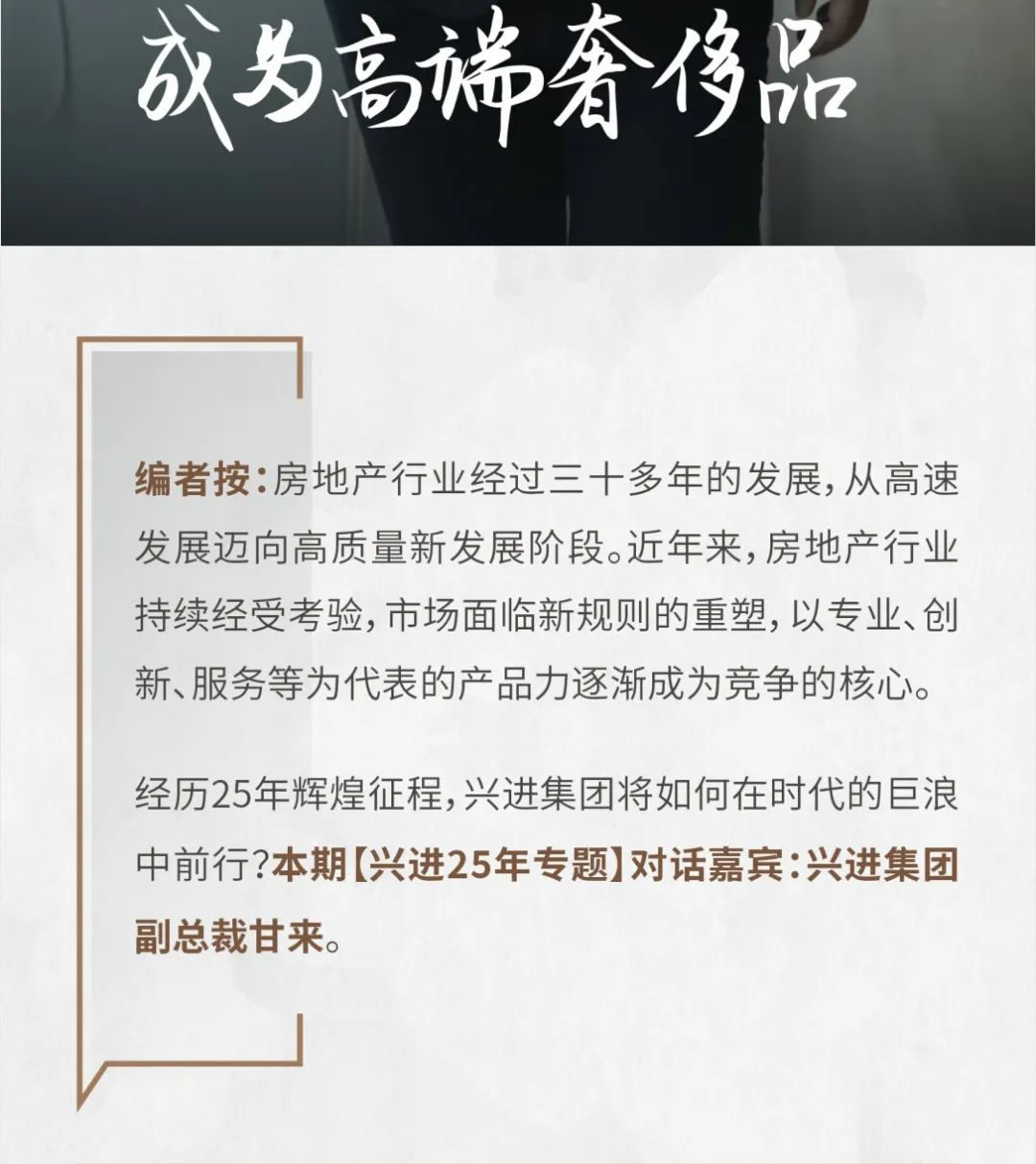 興進(jìn)25年 對話興進(jìn)集團(tuán)副總裁甘來:讓中式建筑成為高端奢侈品