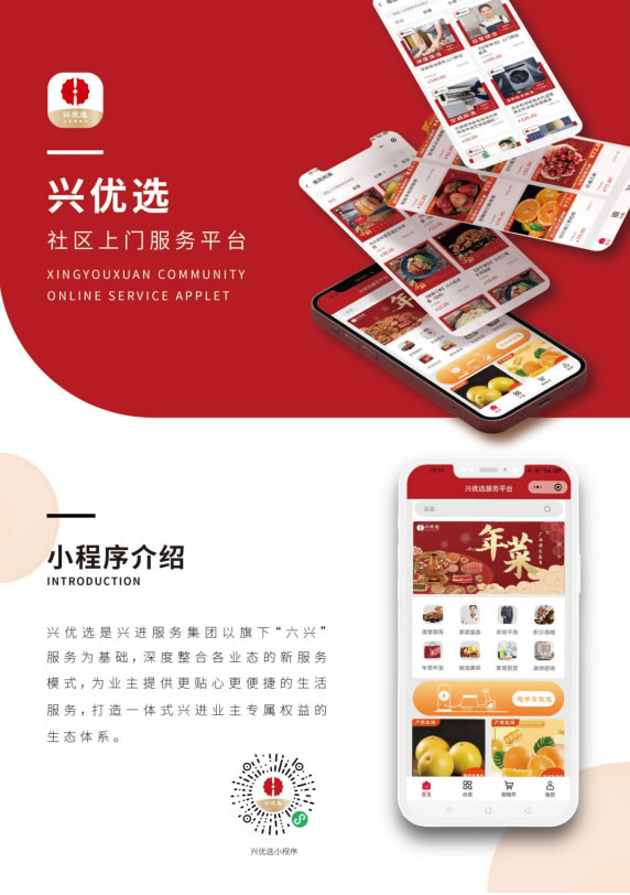 與此同時(shí),興進(jìn)物業(yè)探索"物業(yè)+生活"的服務(wù)模式,從業(yè)主需求出發(fā),打造出自己的物業(yè)增值服務(wù)新亮點(diǎn)。為滿足業(yè)主的家裝需求,聯(lián)合商家升級(jí)美居服務(wù);通過(guò)線上線下租賃"興中介"平臺(tái),為業(yè)主提供個(gè)性化的中介服務(wù);基于社區(qū)購(gòu)物需求及日常生活所需,整合優(yōu)質(zhì)資源,通過(guò)線上平臺(tái)"興優(yōu)選"為業(yè)主帶來(lái)更便利優(yōu)質(zhì)的購(gòu)物、家政體驗(yàn)。