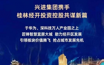 興進(jìn)集團(tuán)攜手桂林經(jīng)開投資控股共謀新篇。于華為、深科技萬人產(chǎn)業(yè)園之上,打造智慧宜居大城,助力經(jīng)開區(qū)發(fā)展。