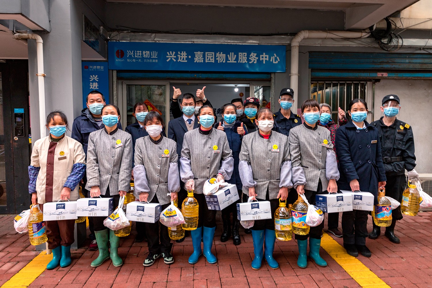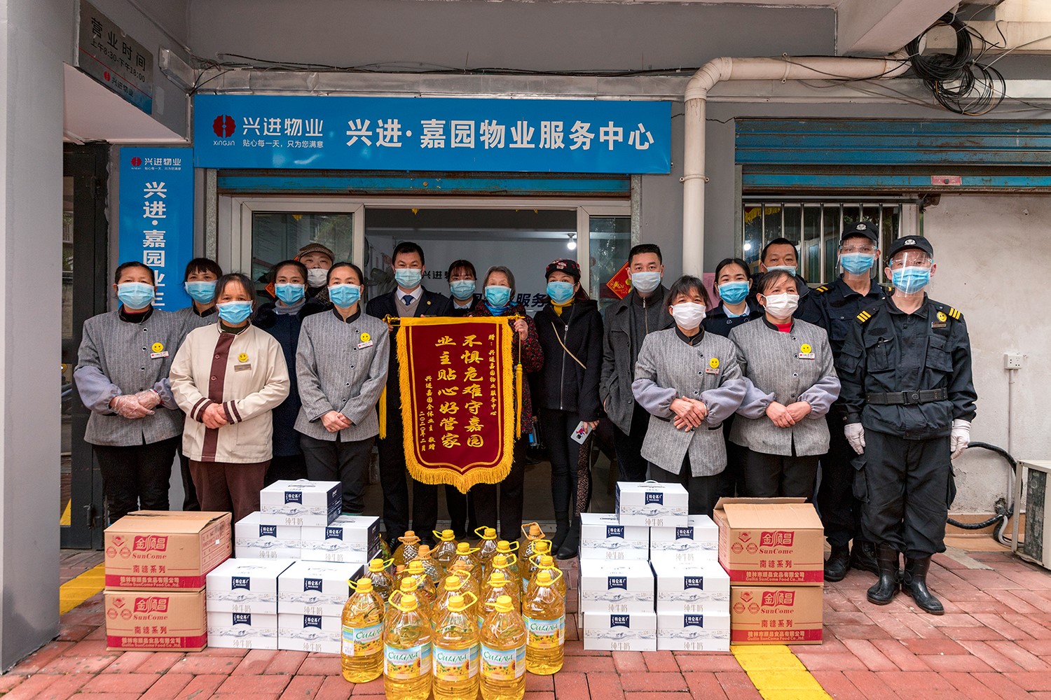 “當很多人的目光聚焦在疫區(qū)一線時,我們非常感激嘉園的業(yè)主們能關(guān)心一樣身處社區(qū)防疫一線的物業(yè)人”, 無以言表唯有感恩于行,食用油、牛奶...當一份份慰問品送到堅守崗位的興進物業(yè)人手中,禮輕情意重,疫情讓我們空間上保持距離,但卻讓彼此的心更靠近!