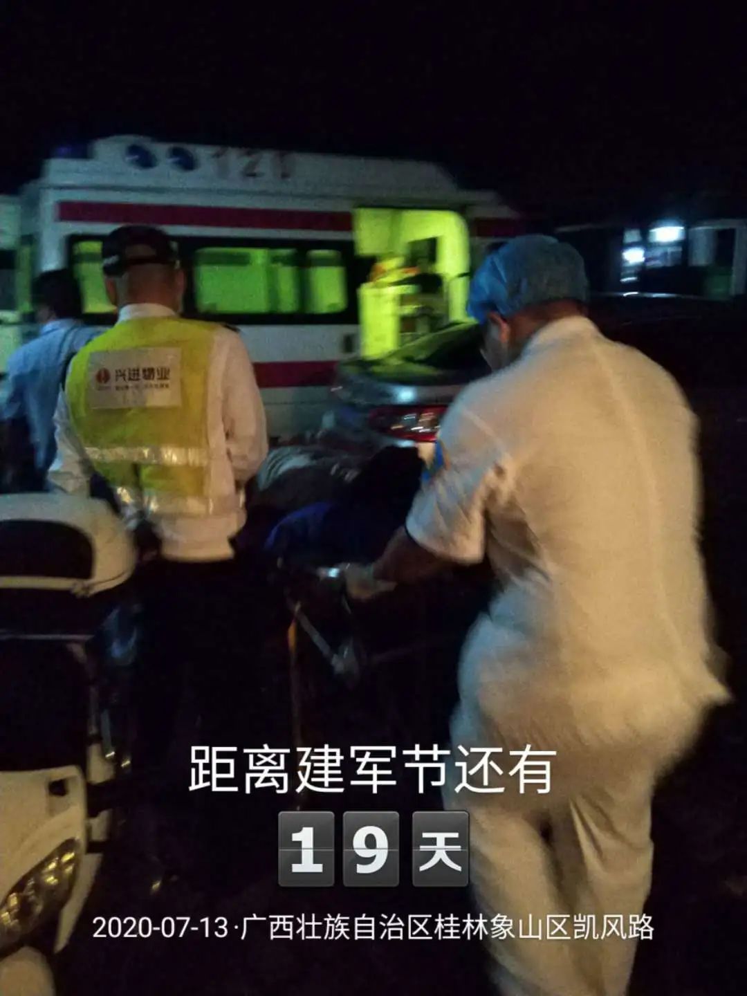 7月13日凌晨,興進·嘉園業(yè)主的丈夫突發(fā)疾病,嘉園秩序班長甘泳川在收到求助電話后,立即趕到業(yè)主家里,看查情況,陪伴安慰業(yè)主,一起等待醫(yī)護人員到來。